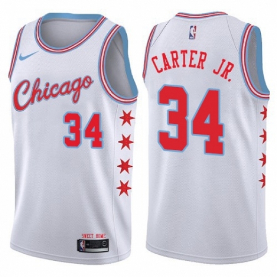 >Men's Nike Chicago Bulls #34 Wendell Carter Jr. Authentic White NBA Jersey - City Edition