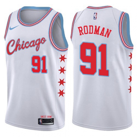Men's Nike Chicago Bulls #91 Dennis Rodman Authentic White NBA Jersey - City Edition