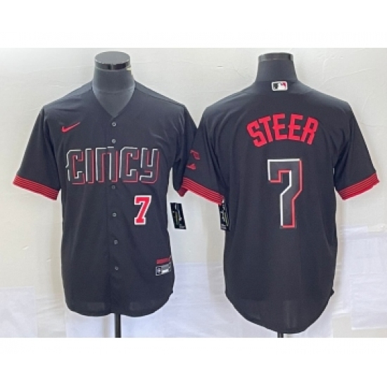 Men's Nike Cincinnati Reds #7 Spencer Steer Black 2023 City Connect Cool Base Stitched Baseball Jersey