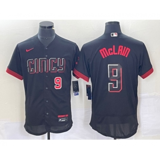 Men's Nike Cincinnati Reds #9 Matt McLain Number Black 2023 City Connect Flex Base Stitched Jersey1