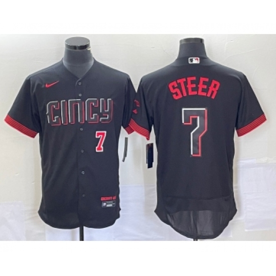 Men's Nike Cincinnati Reds #7 Spencer Steer Black 2023 City Connect Cool Base Stitched Baseball Jersey 1