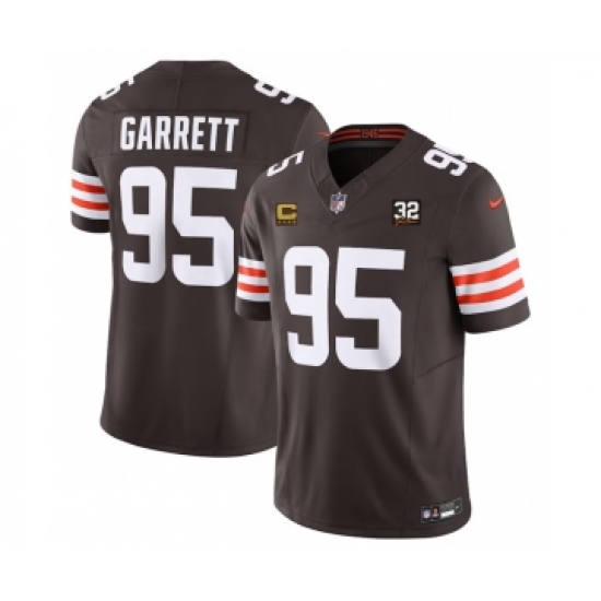 Men's Cleveland Browns #95 Myles Garrett Brown Alternate 2025 F.U.S.E. 4-Star C With Jim Brown Memorial & Home Vapor Limited Football Stitched Jersey