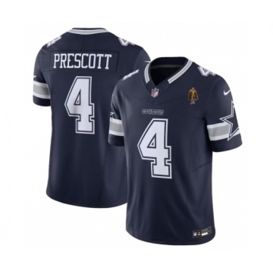 >Men's Nike Dallas Cowboys #4 Dak Prescott Navy 2023 F.U.S.E. Walter Payton Vapor Limited Football Stitched Jersey