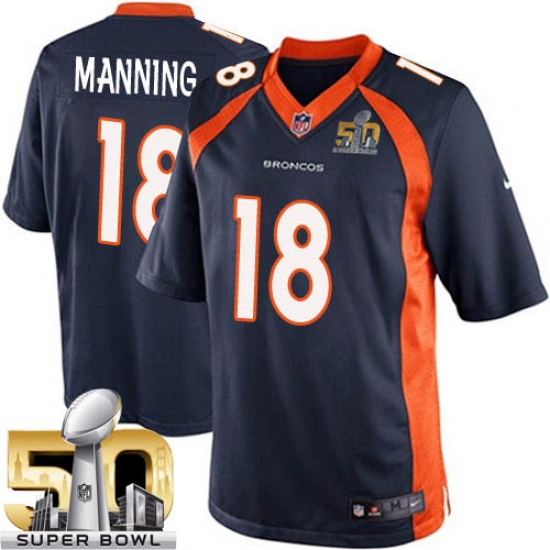 Men's Nike Denver Broncos #18 Peyton Manning Limited Navy Blue Alternate Super Bowl 50 Bound NFL Jersey