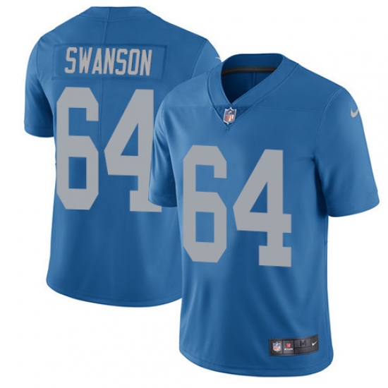 Home>NFL>Detroit Lions>Travis Swanson>Men's Nike Detroit Lions #64 Travis Swanson Limited Blue Alternate Vapor Untouchable NFL Jersey