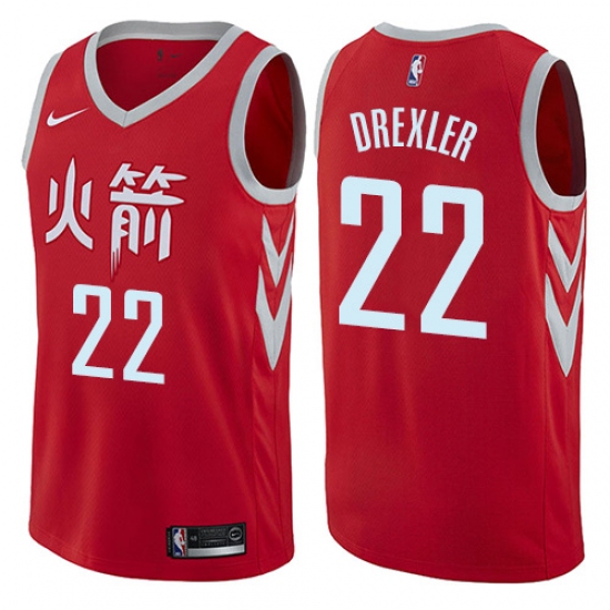 Home>NBA>Houston Rockets>Clyde Drexler>Men's Nike Houston Rockets #22 Clyde Drexler Authentic Red NBA Jersey - City Edition
