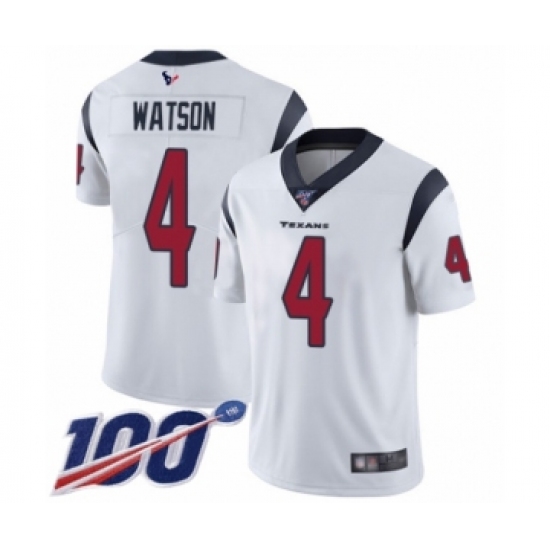 Men's Nike Houston Texans #4 Deshaun Watson White Vapor Untouchable Limited Player 100th Season NFL Jersey