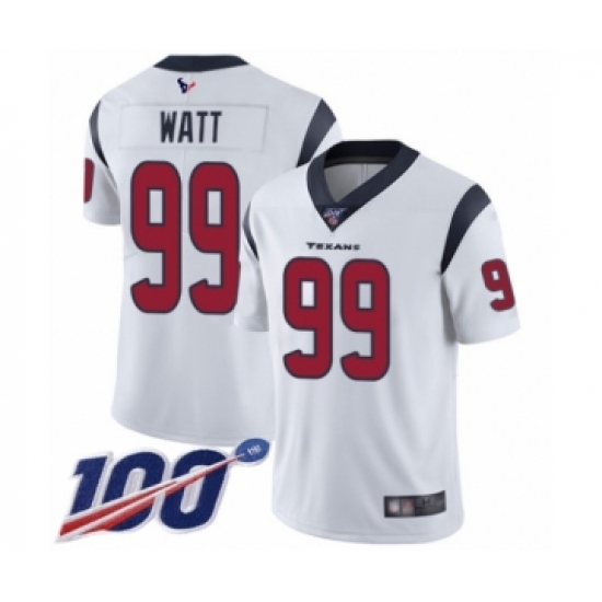 >Men's Nike Houston Texans #99 J.J. Watt White Vapor Untouchable Limited Player 100th Season NFL Jersey