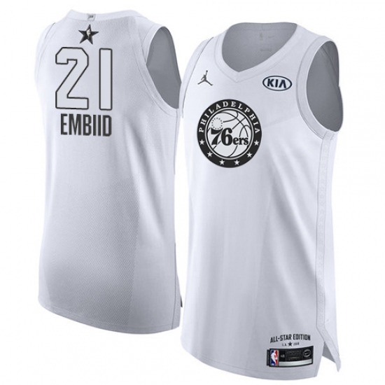 Home>NBA>Philadelphia 76ers>Joel Embiid>Men's Nike Jordan Philadelphia 76ers #21 Joel Embiid Authentic White 2018 All-Star Game NBA Jersey