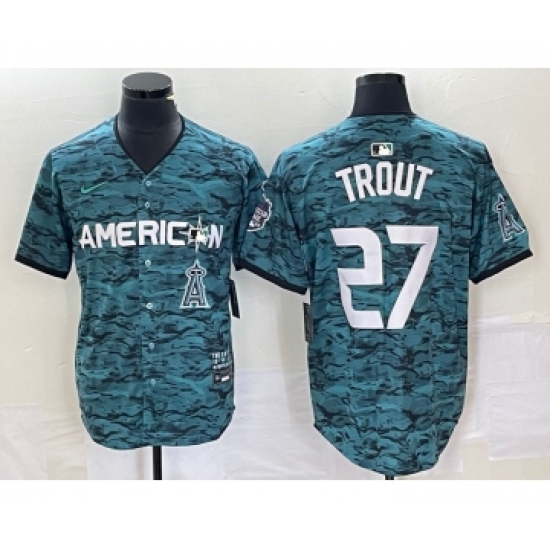 Men's Nike Los Angeles Angels #27 Mike Trout Teal 2023 All Star Cool Base Stitched Jersey1