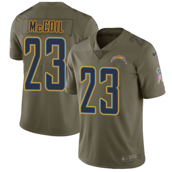 Home>NFL>Los Angeles Chargers>Dexter McCoil>Men's Nike Los Angeles Chargers #23 Dexter McCoil Limited Olive 2017 Salute to Service NFL Jersey