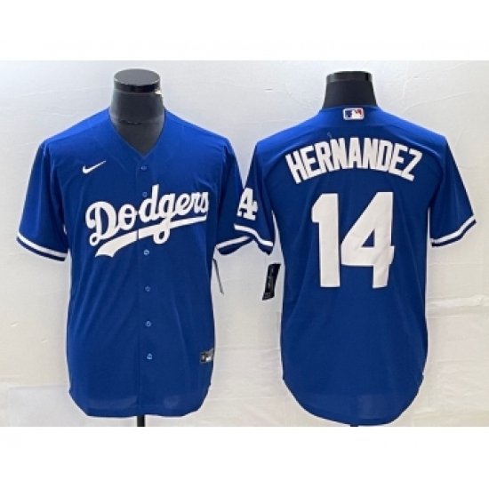 >Men's Nike Los Angeles Dodgers #14 Enrique Hernandez Blue Stitched Cool Base Jersey