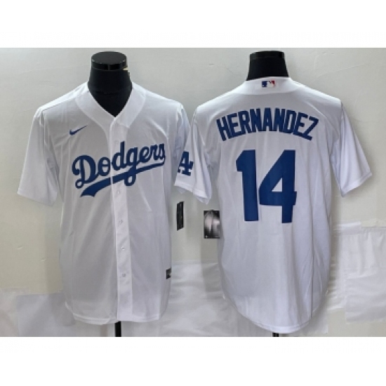 Men's Nike Los Angeles Dodgers #14 Enrique Hernandez White Stitched Cool Base Jersey