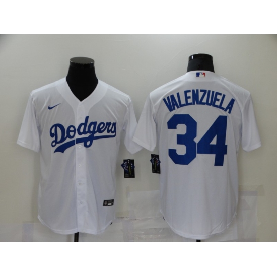 >Men's Nike Los Angeles Dodgers #34 Fernando Valenzuela White Jersey