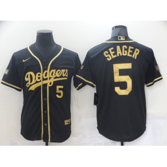 Men's Los Angeles Dodgers #5 Corey Seager Authentic Black Gold Fashion Baseball Jersey