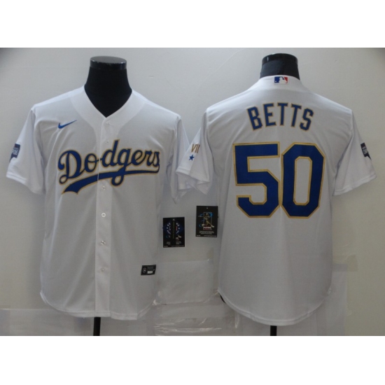 Men's Los Angeles Dodgers #50 Mookie Betts White 2020 World Series Replica Jersey
