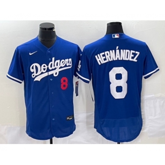 >Men's Nike Los Angeles Dodgers #8 Kike Hernandez Number Blue Stitched Flex Base Jersey