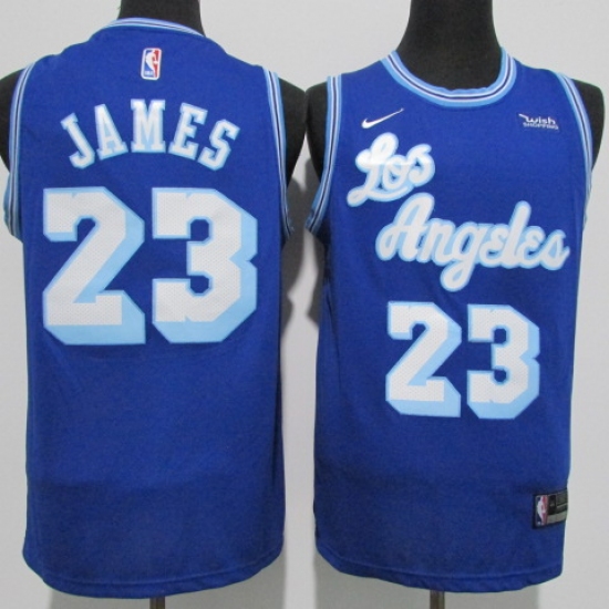 Men's Nike Los Angeles Lakers #23 LeBron James Authentic Blue Hardwood Classics NBA Jersey