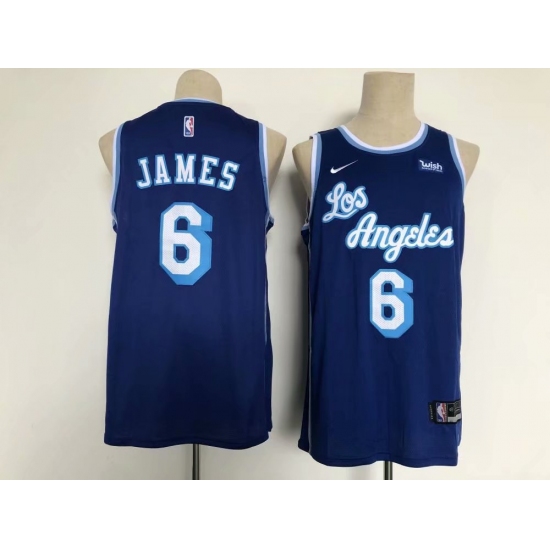 >Men's Nike Los Angeles Lakers #6 LeBron James Blue Basketball Swingman Association Edition Jersey