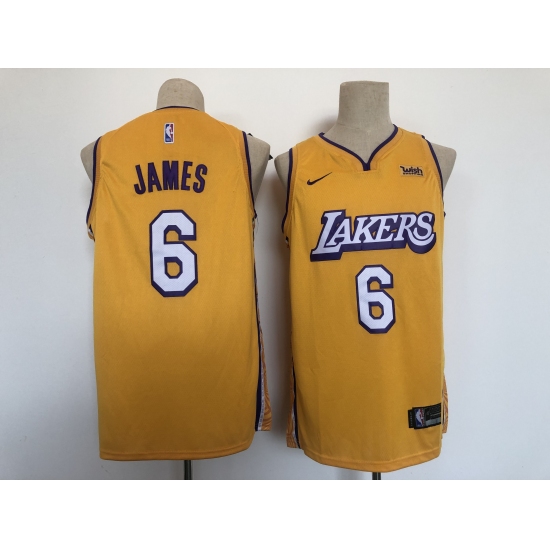 >Men's Nike Los Angeles Lakers #6 LeBron James Yellow City Swingman Association Edition Jersey