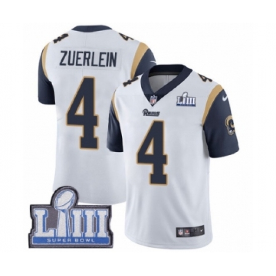 Men's Nike Los Angeles Rams #4 Greg Zuerlein White Vapor Untouchable Limited Player Super Bowl LIII Bound NFL Jersey