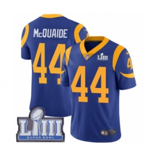 Men's Nike Los Angeles Rams #44 Jacob McQuaide Royal Blue Alternate Vapor Untouchable Limited Player Super Bowl LIII Bound NFL Jersey