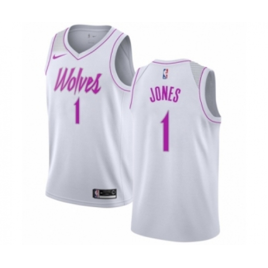 >Men's Nike Minnesota Timberwolves #1 Tyus Jones White Swingman Jersey - Earned Edition