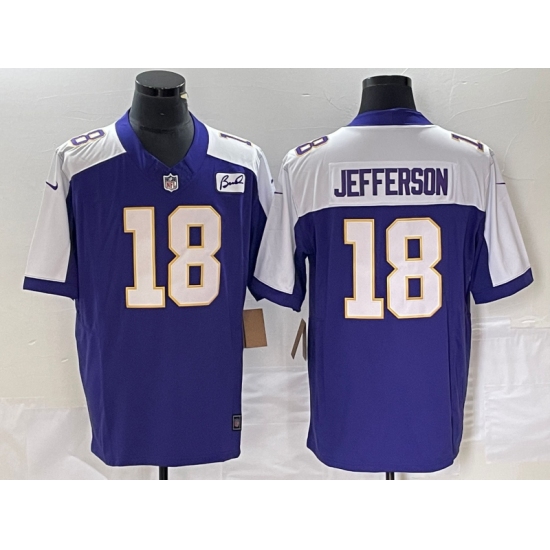 Men's Nike Minnesota Vikings #18 Justin Jefferson Purple-White 2023 F.U.S.E. Vapor Untouchable Stitched Football Jersey