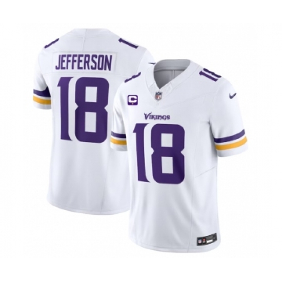 >Men's Nike Minnesota Vikings #18 Justin Jefferson White 2023 F.U.S.E. 1-Star C Vapor Untouchable Limited Football Stitched Jersey