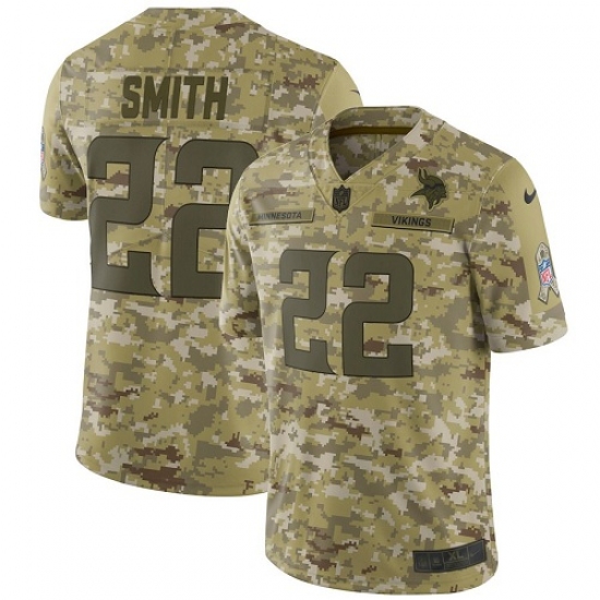 >Men's Nike Minnesota Vikings #22 Harrison Smith Limited Camo 2018 Salute to Service NFL Jersey