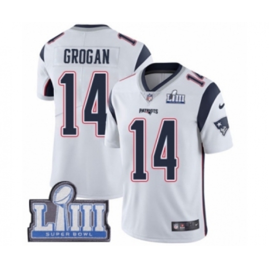Men's Nike New England Patriots #14 Steve Grogan White Vapor Untouchable Limited Player Super Bowl LIII Bound NFL Jersey