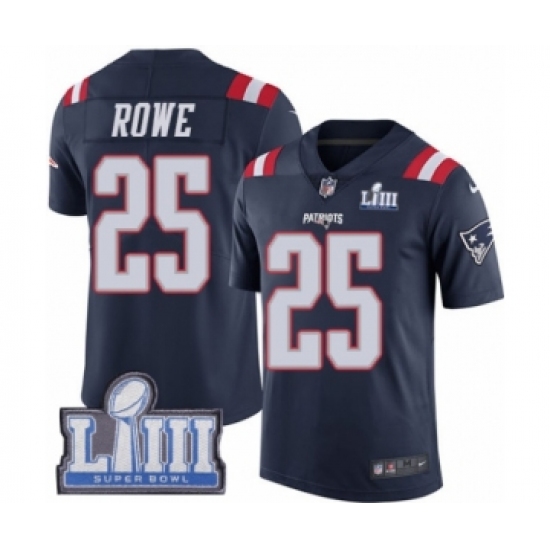 Men's Nike New England Patriots #25 Eric Rowe Limited Navy Blue Rush Vapor Untouchable Super Bowl LIII Bound NFL Jersey