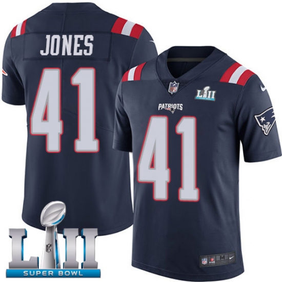 Home>NFL>New England Patriots>Cyrus Jones>Men's Nike New England Patriots #41 Cyrus Jones Limited Navy Blue Rush Vapor Untouchable Super Bowl LII NFL Jersey