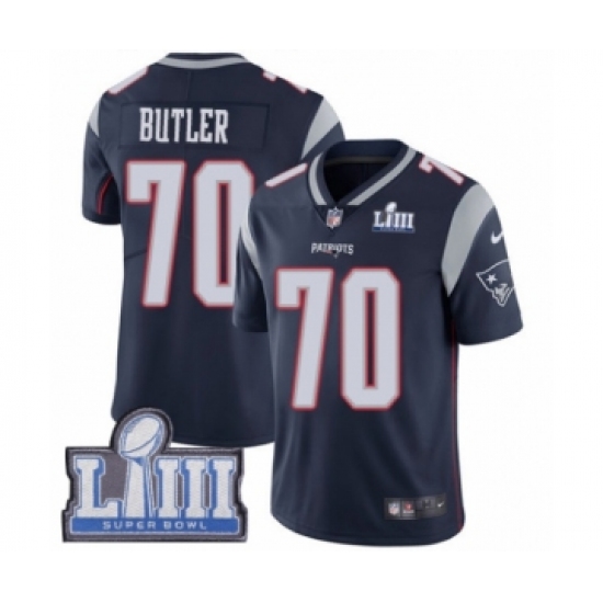 >Men's Nike New England Patriots #70 Adam Butler Navy Blue Team Color Vapor Untouchable Limited Player Super Bowl LIII Bound NFL Jersey
