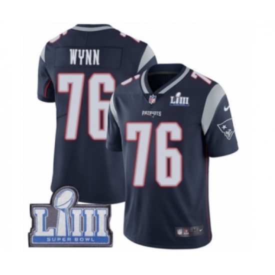 Men's Nike New England Patriots #76 Isaiah Wynn Navy Blue Team Color Vapor Untouchable Limited Player Super Bowl LIII Bound NFL Jersey