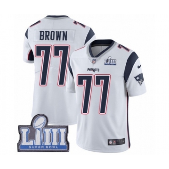 Men's Nike New England Patriots #77 Trent Brown White Vapor Untouchable Limited Player Super Bowl LIII Bound NFL Jersey