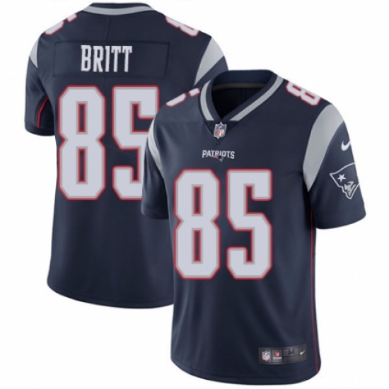 >Men's Nike New England Patriots #85 Kenny Britt Navy Blue Team Color Vapor Untouchable Limited Player NFL Jersey