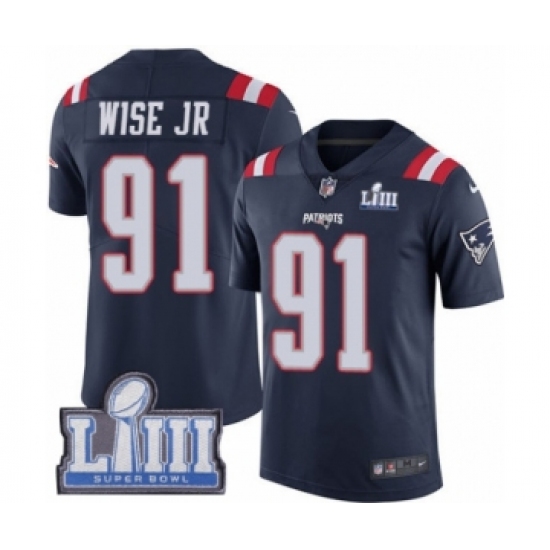 Men's Nike New England Patriots #91 Deatrich Wise Jr Limited Navy Blue Rush Vapor Untouchable Super Bowl LIII Bound NFL Jersey