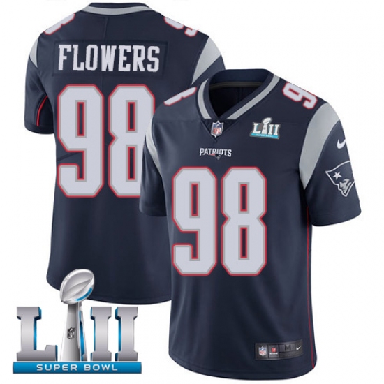 Men's Nike New England Patriots #98 Trey Flowers Navy Blue Team Color Vapor Untouchable Limited Player Super Bowl LII NFL Jersey