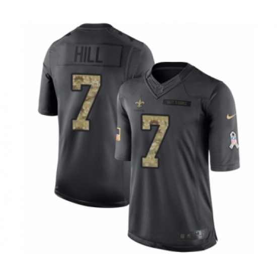 >Men's Nike New Orleans Saints #7 Taysom Hill Limited Black 2016 Salute to Service NFL Jersey