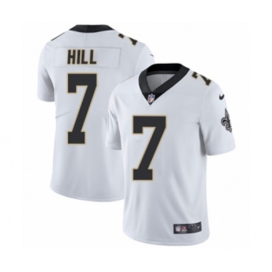 >Men's Nike New Orleans Saints #7 Taysom Hill White Vapor Untouchable Limited Player NFL Jersey