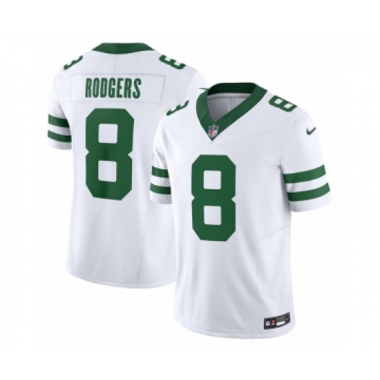 Men's Nike New York Jets #8 Aaron Rodgers White 2023 F.U.S.E. Vapor Limited Throwback Stitched Football Jersey