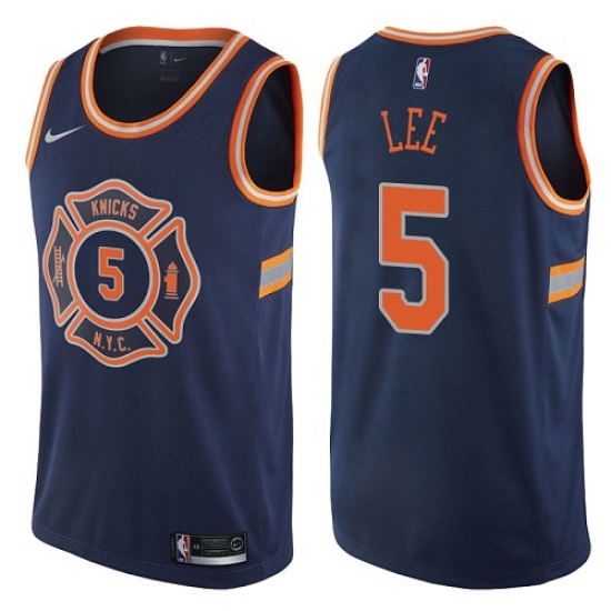 Men's Nike New York Knicks #5 Courtney Lee Authentic Navy Blue NBA Jersey - City Edition