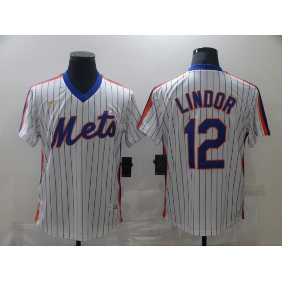 Men's Nike New York Mets #12 Francisco Lindor White stripes Jersey