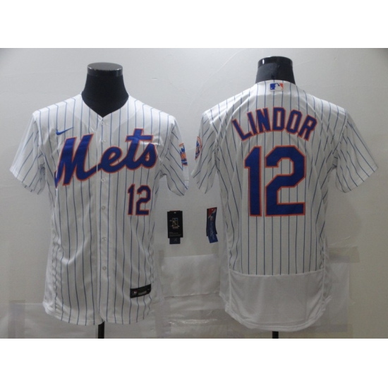 Men's Nike New York Mets #12 Francisco Lindor White stripes Jersey