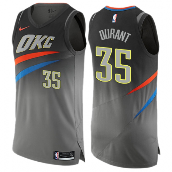 Home>NBA>Oklahoma City Thunder>Kevin Durant>Men's Nike Oklahoma City Thunder #35 Kevin Durant Authentic Gray NBA Jersey - City Edition