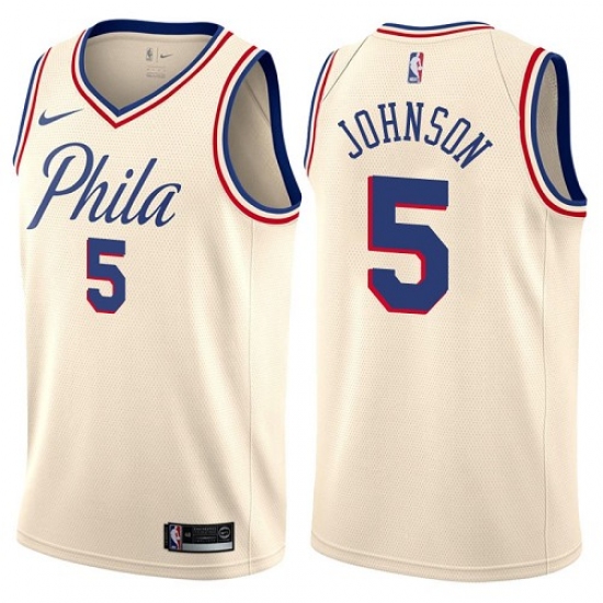 Home>NBA>Philadelphia 76ers>Amir Johnson>Men's Nike Philadelphia 76ers #5 Amir Johnson Swingman Cream NBA Jersey - City Edition