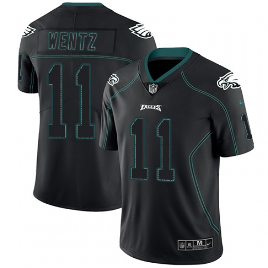 >Men's Nike Philadelphia Eagles #11 Carson Wentz Limited Lights Out Black Rush NFL Jersey
