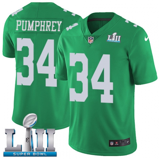 Home>NFL>Philadelphia Eagles>Donnel Pumphrey>Men's Nike Philadelphia Eagles #34 Donnel Pumphrey Limited Green Rush Vapor Untouchable Super Bowl LII NFL Jersey