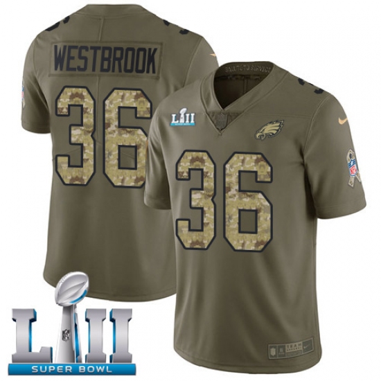 >Men's Nike Philadelphia Eagles #36 Brian Westbrook Limited Olive Camo 2017 Salute to Service Super Bowl LII NFL Jersey